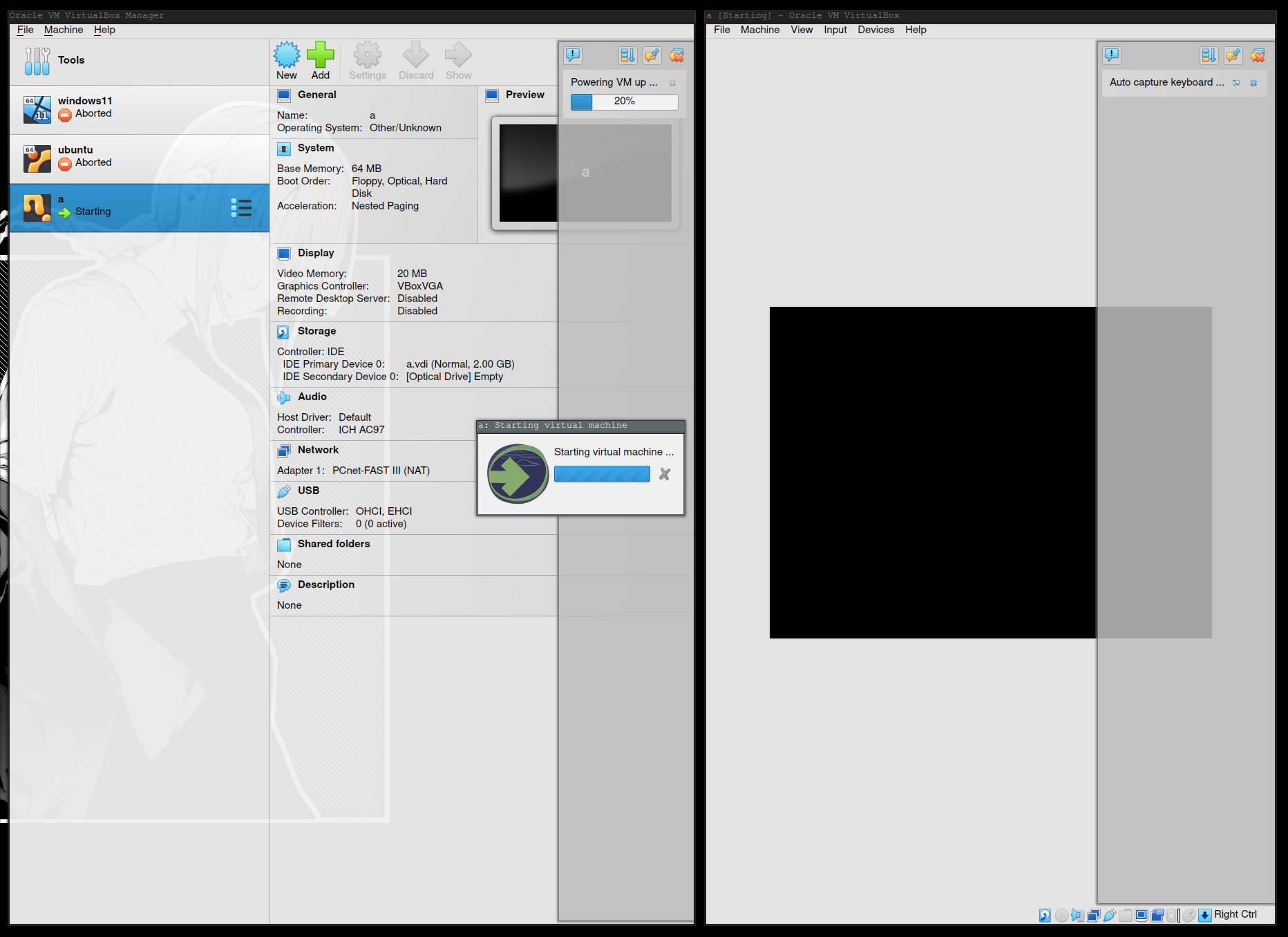 起動させると20%で止まってゾンビプロセスとなってしまいます。